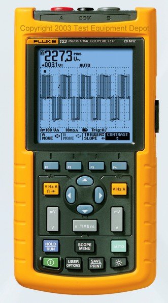 The compact ScopeMeter Fluke 123 and Fluke 124 offer the rugged solution for industrial troubleshooting and installation applications. It's a truly integrated test tool, with oscilloscope, multimeter and "paperless" recorder in one affordable, easy-to-use instrument. Find fast answers to problems in machinery, instrumentation, control and power systems.