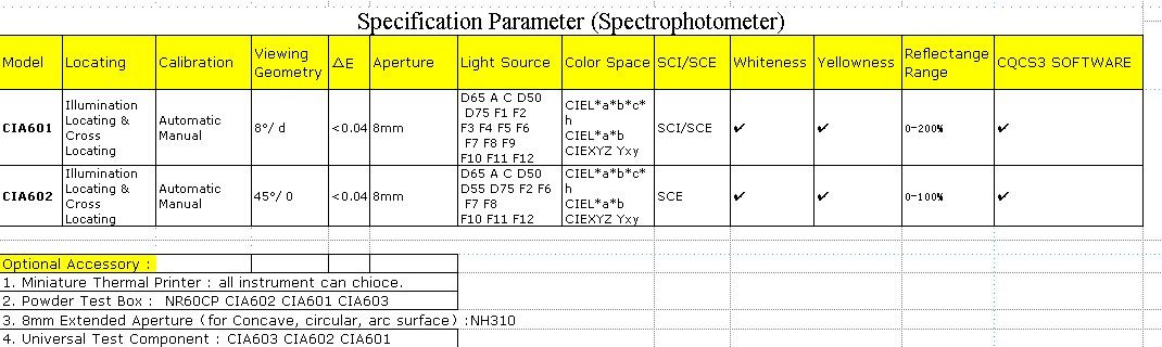 portable spectrophotometer not only can help to perform color matching and color management studies, but also can control product quality management accurately. The instrument is equipped with high-end color management software which can connect PC to achieve more extension functions. CIA602 Spectrophotometer with 45/0 CIA602 spectrophotometer is developed by KKI with independent intellectual property rights.It uses 45/0 geometrical optical structure, comply with CIE No.15, GB/T 3978. With human body engineering mechanics and humanized operation design, NS800 has stable performance precise measurement and powerful functions in the leading position of the same industry. With 400~700nm, NS800 spectrophotometer features with high accuracy DeltaE*ab 0.04, and 8mm aperture makes measurement so easy. It can save 1000 Standards, 15000 Samples and you also can input your own LAB or XYZ value into the instrument. With SQC8 software, you can do better color control management. Plus, it is widely used in plastic, electronic, paint, ink, textile, garment, printing and dyeing, food, medical, cosmetic, industries, scientific research institutes, schools and...