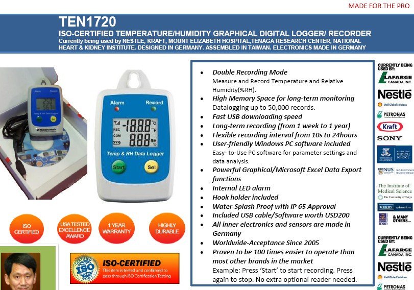 Featured item TEN1720-TEMPERATURE/ HUMIDITY(RH) GRAPHICAL DIGITAL LOGGER/RECORDER